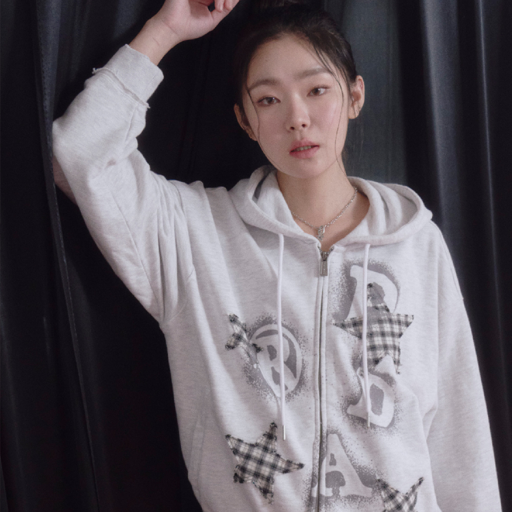 PRDA SPRAY BIG PATCH CHECK STAR HOOD ZIP-UP HEATHER GRAY