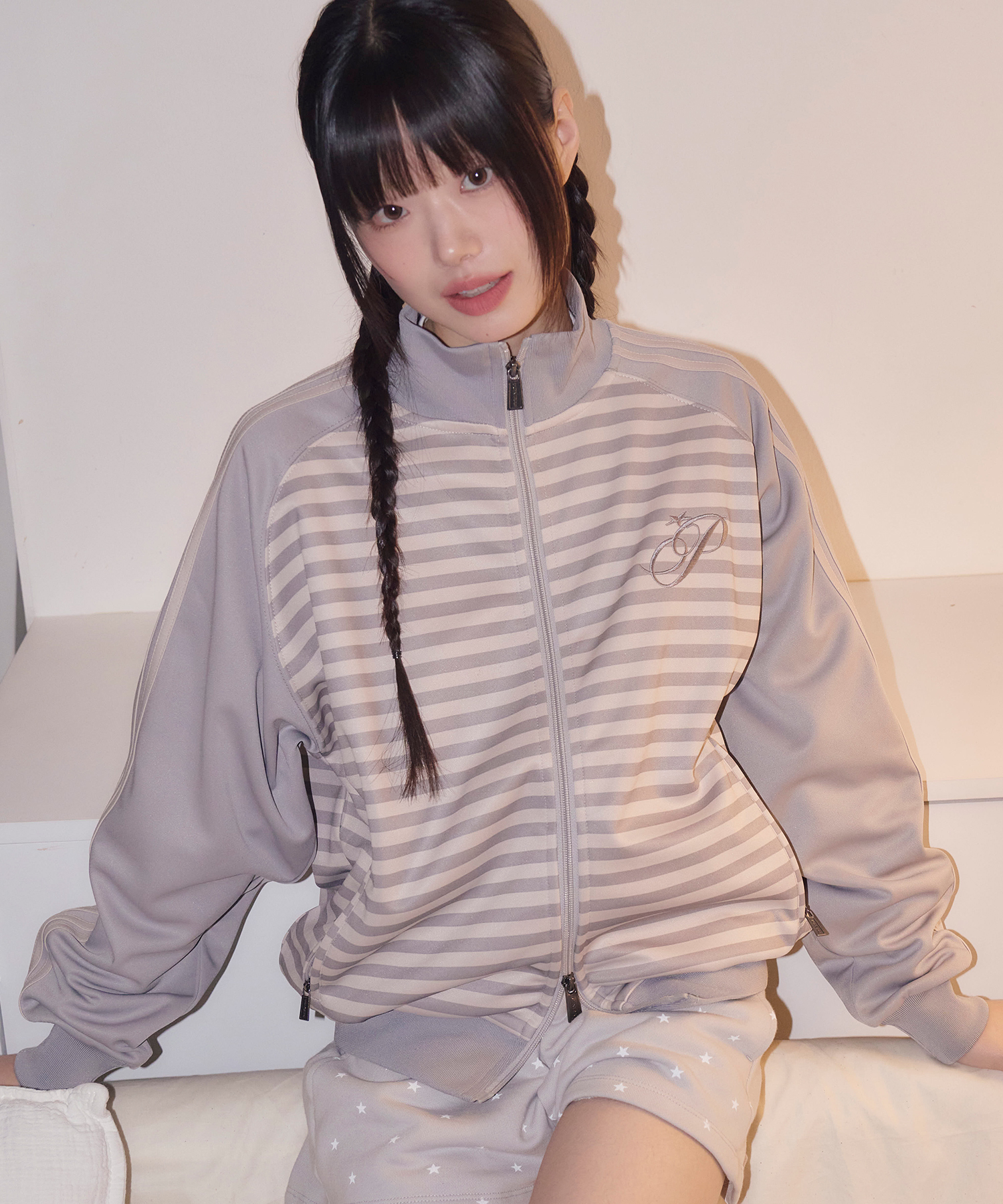 STRIPE RAGLAN JERSEY TRACK JACKET GRAYISH BEIGE