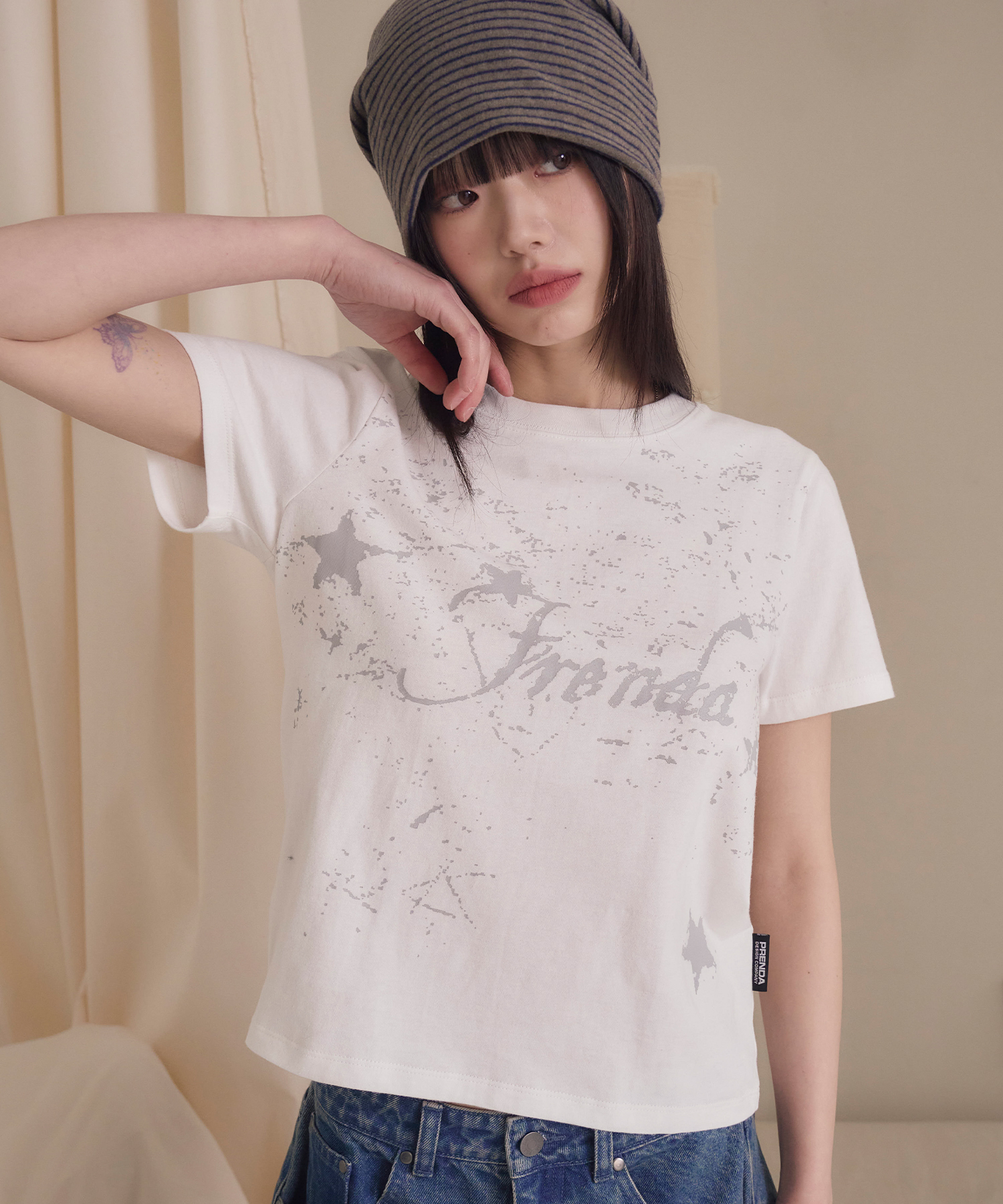 STAR LETTERING LOGO CREWNECK TEE WHITE