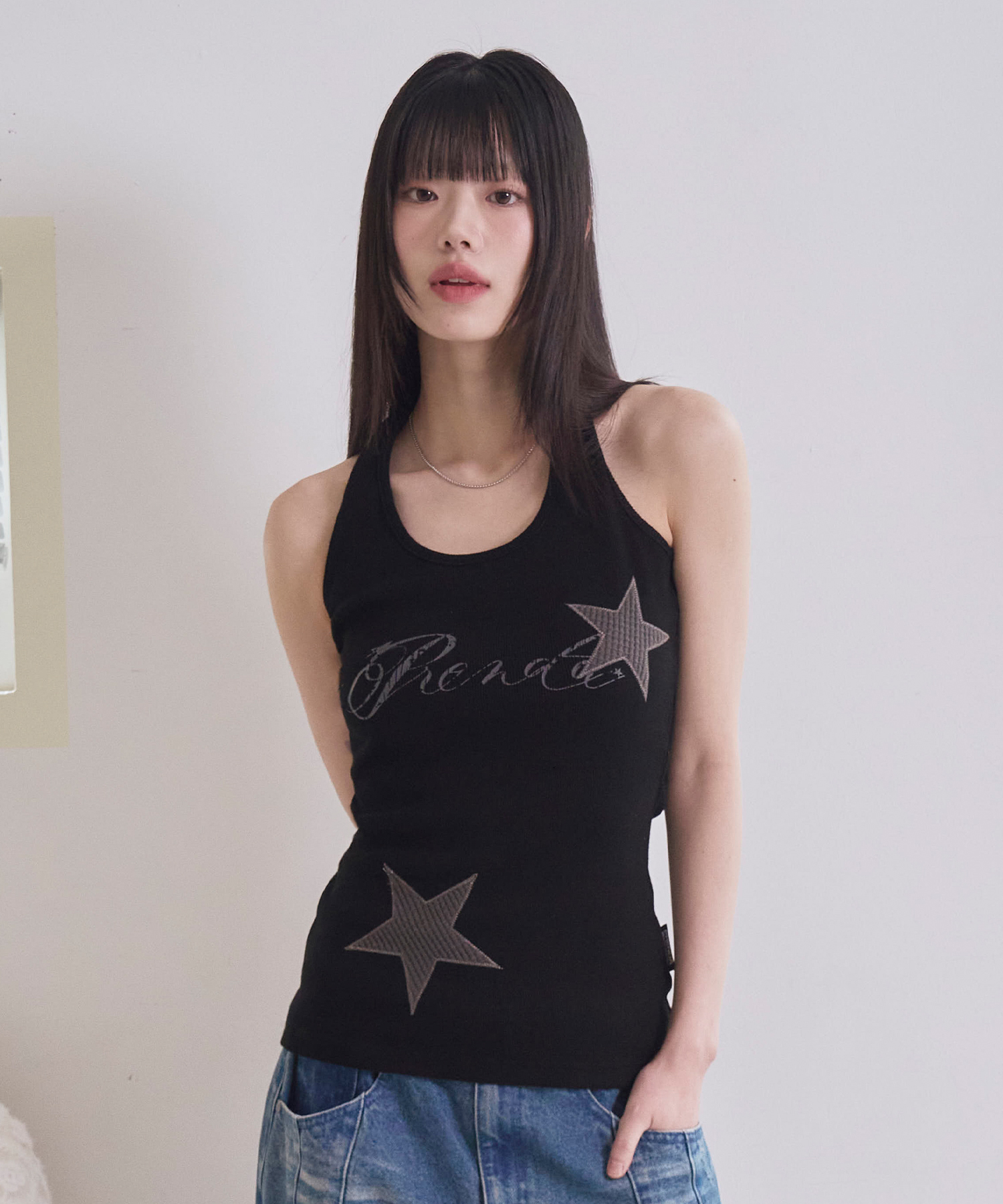 [3/20일 예약 배송] STAR APPLIQUE HALTER NECK SLEEVE LESS BLACK